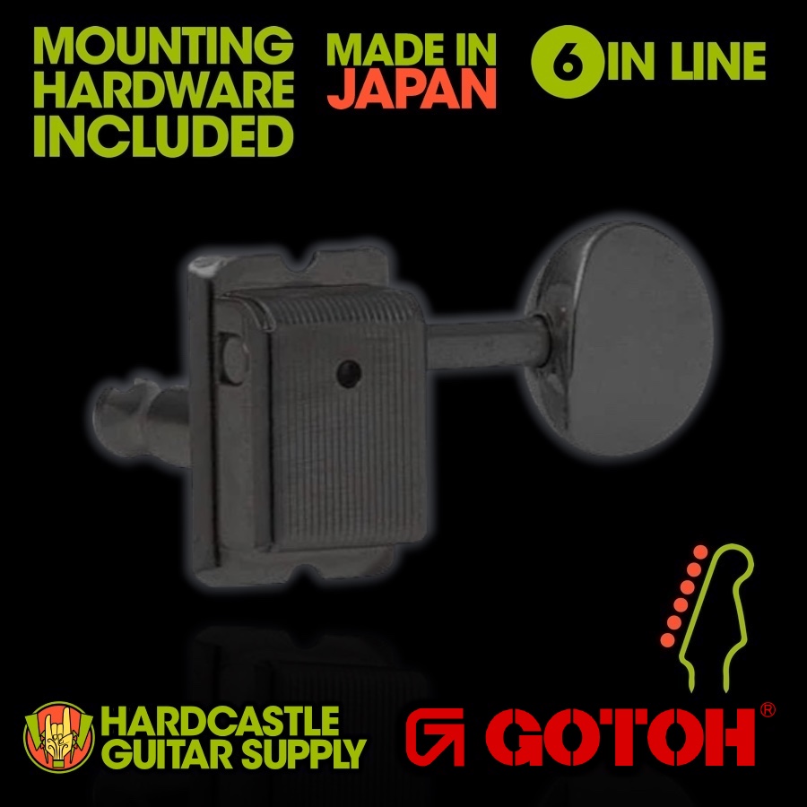 The Gotoh® SD91-05M 6-in-Line Tuners in Black deliver vintage charm with modern functionality. Their classic oval-button Klusonç-style casing allowing for fast string changes and improved tuning reliability.