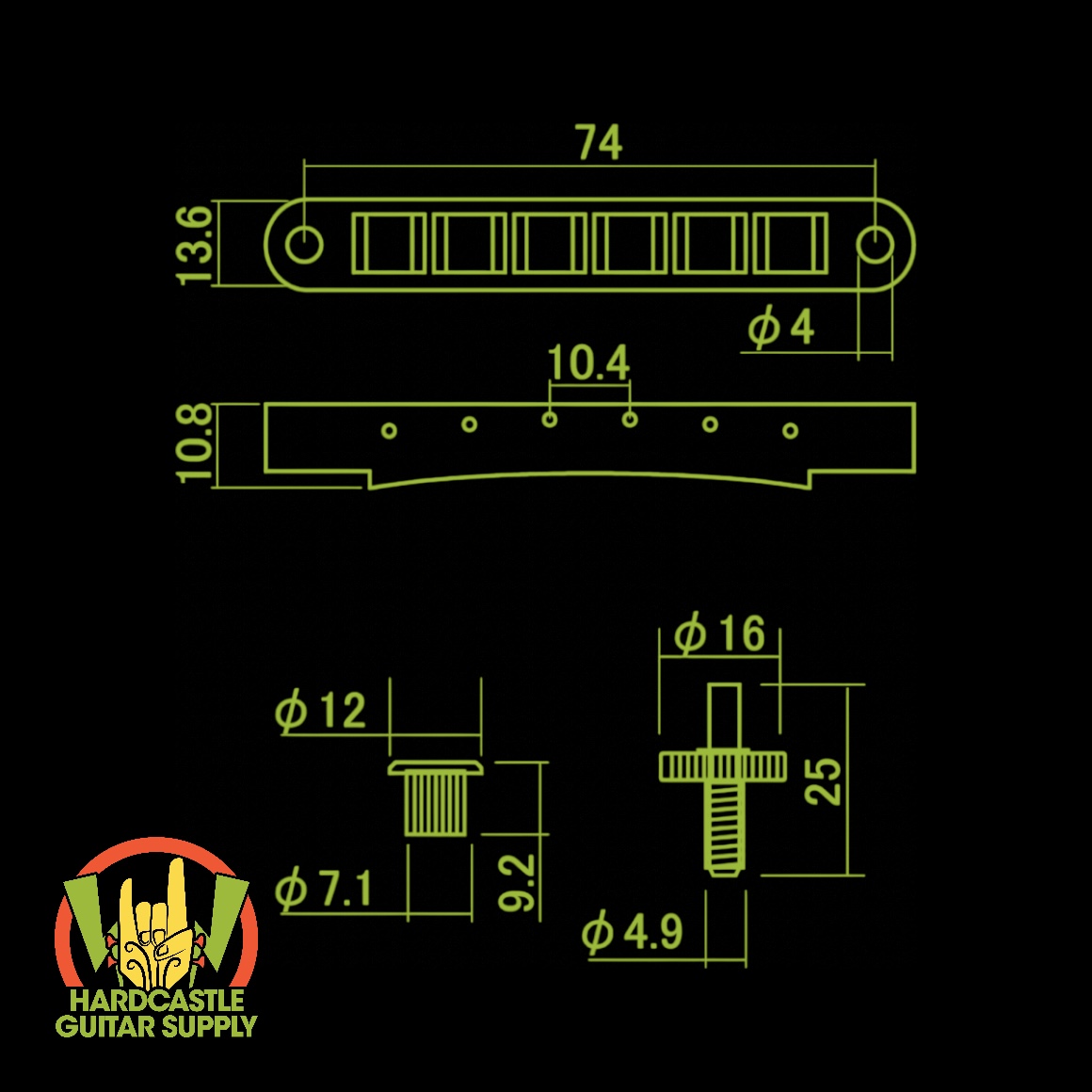 A high-quality Tune-O-Matic bridge with a nickel finish, designed to provide superior sustain, tuning stability, and precise intonation for Gibson®-style guitars.