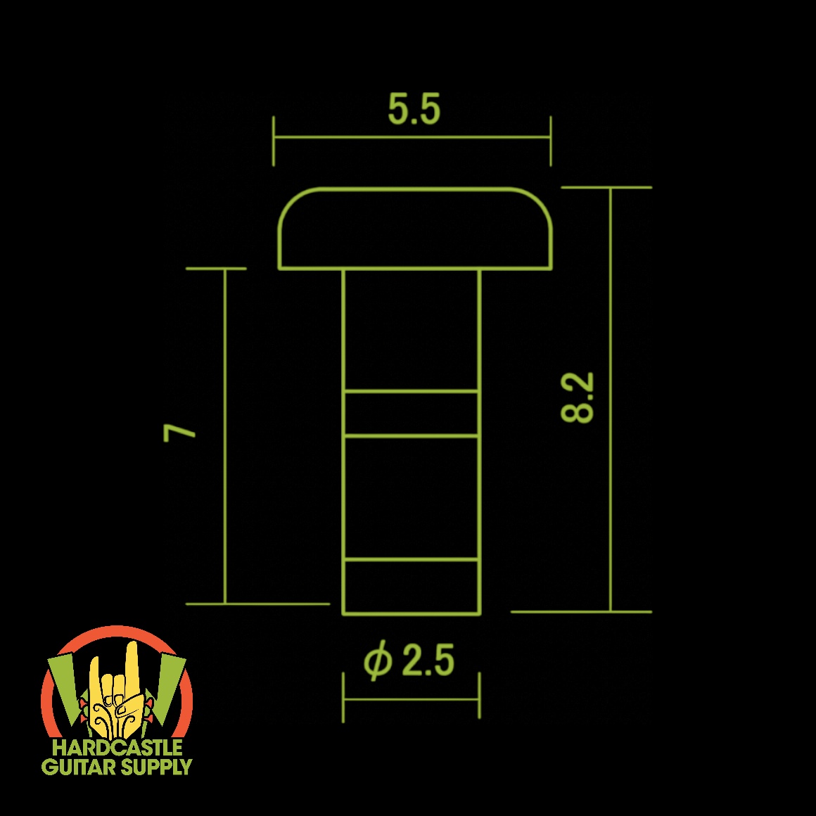 A set of six top-mounted ferrules, designed to securely hold strings in place while maintaining a clean look.